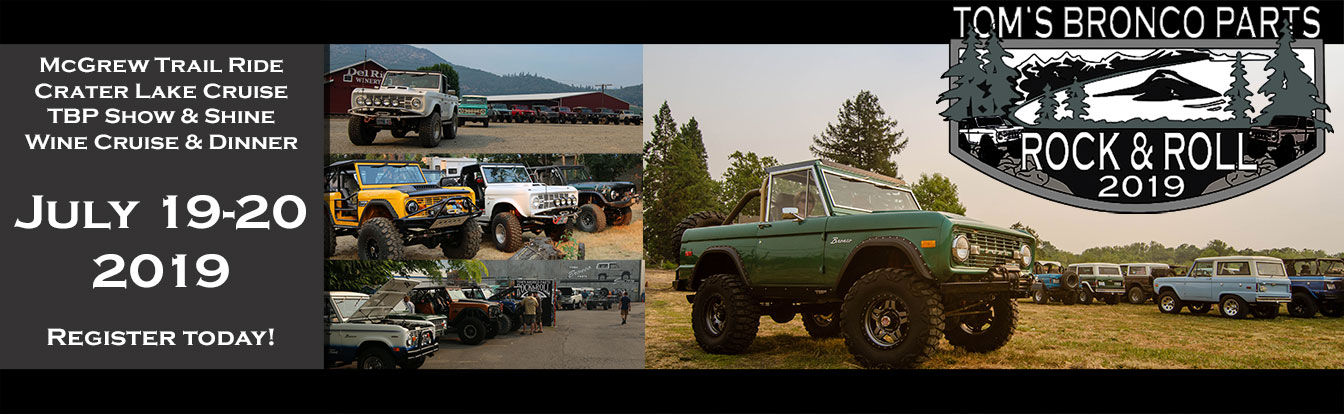 Tom's Bronco Parts is a proud member of the Early Bronco Registry. Read more about TBP ->
